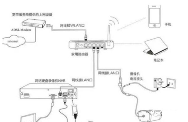 这是一种比较常用的方法,很多朋友都在使用,在综合布线的时候,同时要布电源线和网线,电源也可以就近取220V交流电,这样节省电源线材,这里暂不讨论它的利弊。给每个网络摄像机提供电源。再有一路网线传输网络数据到网络硬盘录像机NVR。