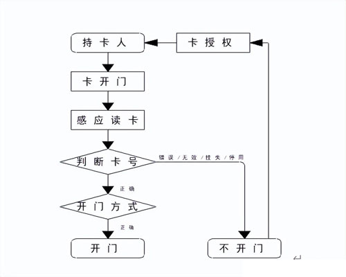 系统通过管理中心对用户进行发卡授权,用户通过在读卡器上刷卡,门禁控制器在接收到读卡器上感应到的用户信息后判断用户权限,然后作出是否打开对应门锁的动作,软件部分可以实时反应所有人员进出信息、门状态信息和相关报警信息等等。
